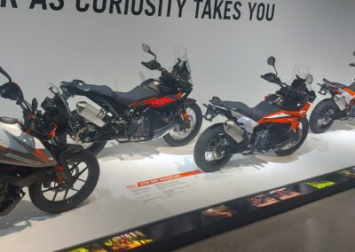Ein ganz besonderes Erlebnis erwartete uns in Mattighofen: der Besuch der KTM Motohall. Die interaktive Ausstellung, bei der wir Fahrzeugteile nicht nur sehen, sondern auch fühlen und “erleben” konnten, führte uns über mehrere Ebenen quer durch die Geschichte der weltbekannten Motorradmarke. Hier war für alle etwas dabei und besonders die alten Motorräder konnten auch Nicht-KTM-Besitzer faszinieren. Als lustiges “Schmankerl” konnte man sich schließlich noch in einen X-Bow setzen (oder eher zwängen, ist ganz schön eng, dieses Ding!) und so etwas Rennluft schnuppern!