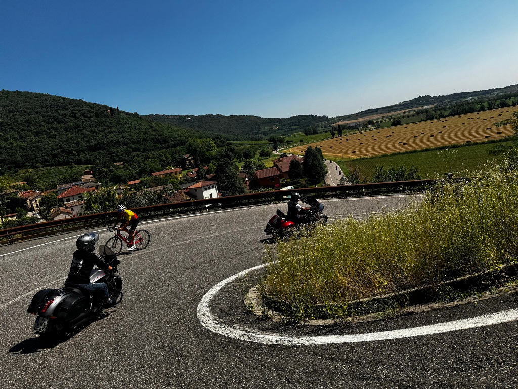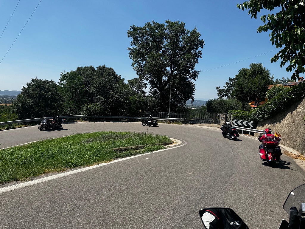 Am Samstag fand dann die gemeinsame Ausfahrt statt – wieder bei enormer Hitze, aber das steckt ein echter Victory Indian Biker problemlos weg! 🙂 Zum Schwitzen war auch gar keine Zeit, denn unsere ganze Konzentration galt der Fahrt durch die malerische italienische Landschaft.